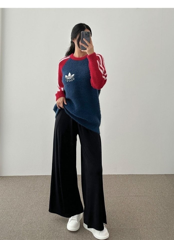 아디다스 x구찌 레플리카남여공용 롱 슬라브 앙고라 니트 스웨터 🔴 color ㅡ 네이비🔴 size ㅡ 여) S(55~66). M(77~88) 남) 95. 100. 105. 110MODEL INFO (186-72. 95착용) (168-48. S착용)