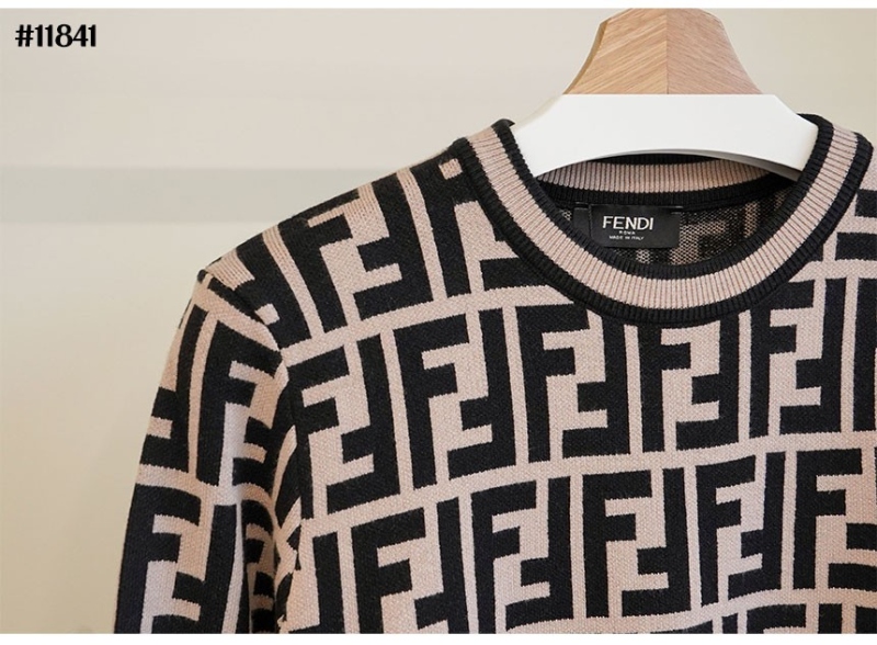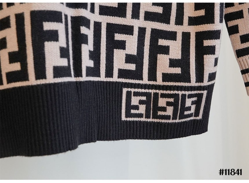 수입 FF 자카드 라운드 니트 스웨터