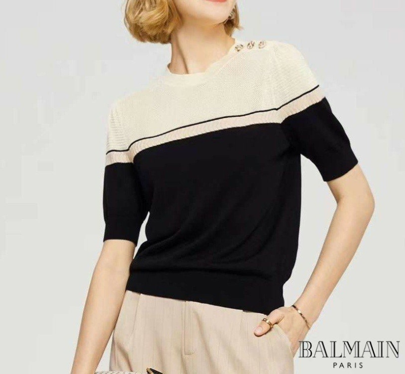 🏷 BM 발망 숄더 쓰리 버튼 반팔 니트