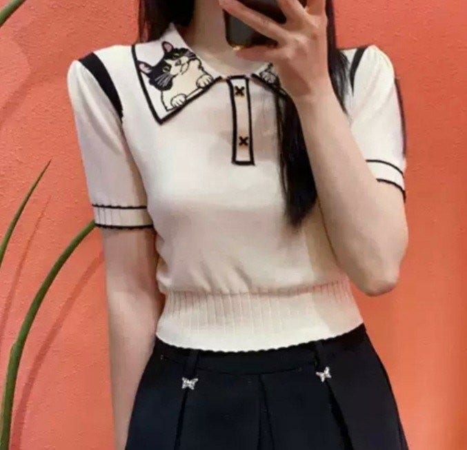🏷 구찌 GG 카라 캣츠 고양이 반팔 니트