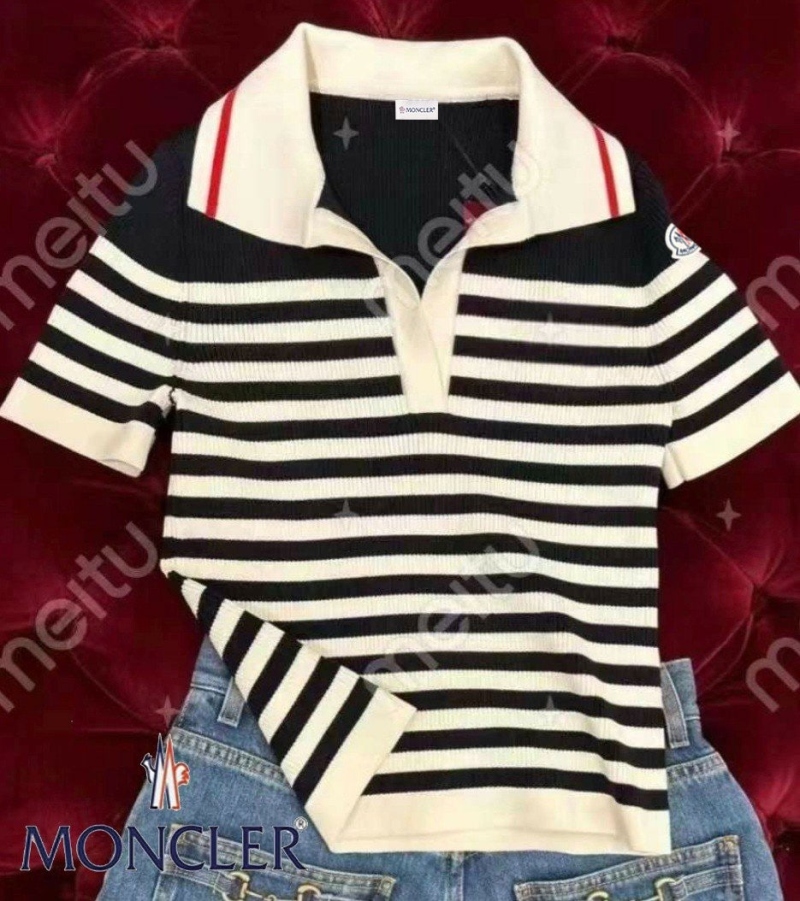 🏷몽클레어 레드선 카라 스트라이프 ST 반팔 니트
