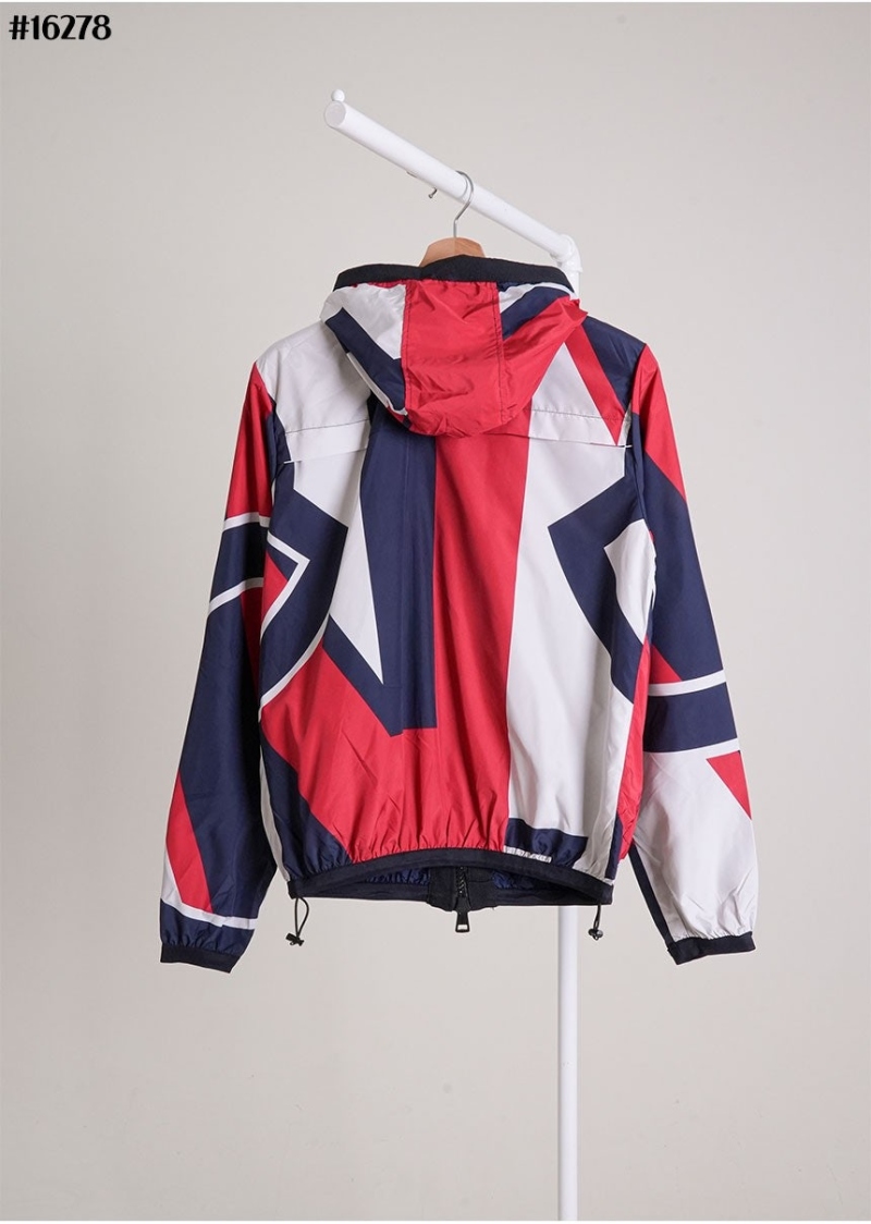 그린 패치 워크 가우스 후드 바람막이 자켓