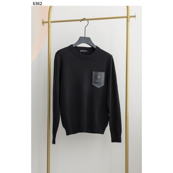 수입고급 가슴 스몰 레더포켓 라운드 니트