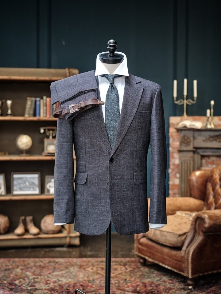 기본컬러의 심플한 수트에서, 구* 만의 중청 데님의 표현이 가미되어,