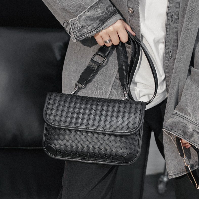 가죽 소재를 인트레치아토 위빙으로 완성한 스몰 크로스바디 백